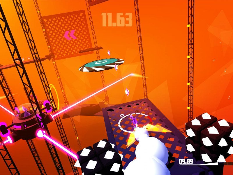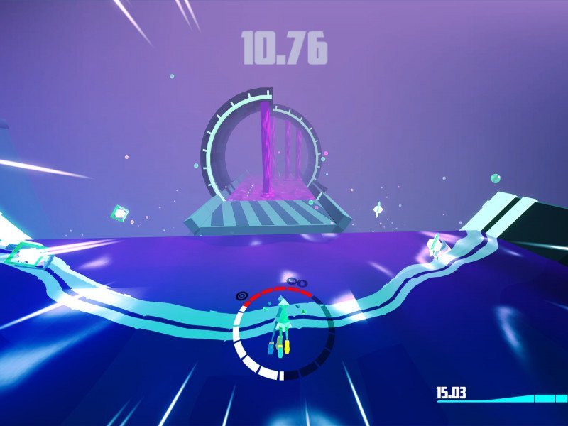 La combinaison de vitesse, de brouillard et de virages serrés de Razed rendait cela impossible la plupart du temps. La distance d'affichage est réduite par le brouillard, obscurcissant le chemin immédiat. Plus problématiques sont les fréquents angles droits et demi-tours imposés par la conception du niveau. Ces angles serrés s'accordent bien avec les graphismes low poly et géométriques de Razed , mais ils rendent les virages impitoyables et empêchent de voir au-delà du virage suivant. Ce qui a donné lieu à de nombreux tâtonnements, et il a fallu perdre la partie en essayant de comprendre exactement ce qu'il fallait faire. Le cycle de répétitions des jeux de plateforme contre-la-montre est désormais familier, et le redémarrage instantané, désormais standard, atténue un peu le jeu, mais masque les problèmes sous-jacents du parcours. Il est arrivé de se retrouver projeté dans les airs, de tomber et de mourir, sans comprendre ce qui se passait ni ce qu'il fallait faire, jusqu'à ce qu'on revienne deux ou trois fois dans la même zone et meure en essayant de l'analyser. Prenons l'exemple des ressorts : l'angle sous lequel nous les percutons modifiait radicalement la trajectoire, et la plupart du temps, débouchait vers un traquenard car les bords de la piste sont aussi des pics mortels. Même les sauts peuvent varier énormément. Nous sautions souvent du même endroit pour finalement mourir, soit parce qu'on avait tourné un peu trop et perdu de la vitesse, soit parce que nous n'avions pas décollé au bon angle. Ses collisions sont même irrégulières. Les pentes sont les pires, la physique devenant vraiment imprévisible et nécessitant un contrebraquage pour contrer la gravité, ce qui est très dangereux vu la maniabilité du véhicule.