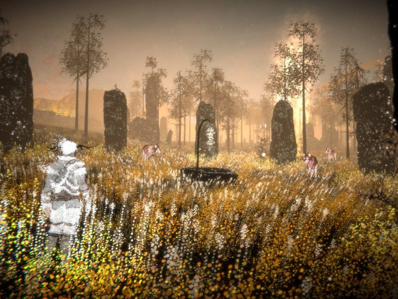 Particle Hearts est un jeu de plateforme et de réflexion méditatif et riche en émotions qui invite les joueurs dans un monde lumineux et onirique, entièrement construit à partir de particules changeantes et d'une narration ambiante. Développé par Underwater Fire et publié par First Break Labs, le jeu s'éloigne des conventions traditionnelles du jeu de plateforme et se concentre davantage sur la création d'une expérience surréaliste et atmosphérique, privilégiant l'introspection, la découverte et la poésie visuelle. C'est un jeu au ton doux, proposant des fragments narratifs subtils et des défis abstraits dans un environnement qui semble constamment sur le point de se défaire ou de se transformer en quelque chose de nouveau. Au cœur du jeu se trouve le Vagabond, une mystérieuse silhouette cornue qui se réveille dans un monde silencieux et étranger, sans aucun souvenir de son passé. Pas de présentation ni de tutoriel guidé : juste un paysage ouvert et le vague sentiment d'avoir perdu ou oublié quelque chose. À mesure que les joueurs explorent, le monde s'ouvre à travers des biomes interconnectés, chacun doté de sa propre identité, de son ambiance sonore et de ses environnements de particules changeantes. Plutôt que d'être guidé par une intrigue centrale, le jeu utilise des fragments de mémoire dispersés – des carillons éoliens disséminés à travers le monde – pour évoquer le passé du Vagabond et l'étrange cycle dans lequel il semble prisonnier. Ces fragments sont entièrement optionnels, ce qui confère à l'histoire une dimension à la fois intime et insaisissable, privilégiant la curiosité plutôt que la réalisation de listes de contrôle.