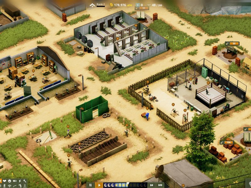 One Military Camp est un jeu de gestion 3D aux éléments stratégiques , axé sur l'humour et, surtout, la gestion des ressources. En résumé, si vous manquez d'argent, la partie est terminée. Et l'argent est primordial, même sur le champ de bataille. De la structure et ses améliorations à son entretien et sa gestion, en passant par le salaire de chaque recrue, tout est lié à l'argent et fonctionne plutôt bien. Il est essentiel de savoir doser ses actions et de sélectionner soigneusement ses recrues. Chaque recrue possède des statistiques, des bonus et/ou des pénalités différents. Cela impactera à la fois ses missions à la base et ses activités lors de missions extérieures, notamment sur le front, avec un potentiel de reconquête de territoire. C'est pourquoi il devient essentiel de constituer une véritable armée prête à tout pour éviter les pertes et maximiser les résultats. À l'écran, l'interface du jeu est assez claire et, malgré un nombre important d'éléments à prendre en compte, un peu de pratique suffit pour maîtriser l'intégralité du camp et ses tâches potentielles. Malheureusement, One Military Camp a été créé pour PC et est sorti en 2023, et le premier élément est plus perceptible que son âge (qui est encore relativement récent).