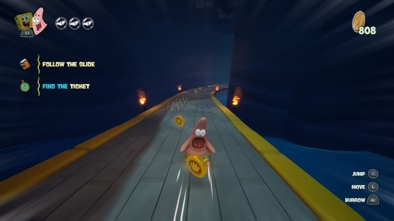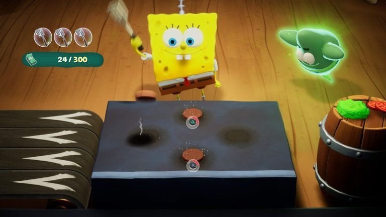 SpongeBob SquarePants: Titans of the Tide est le tout dernier jeu de plateforme 3D inspiré de la série animée à succès de Nickelodeon, Bob l'éponge. Ce jeu vous emmènera dans une aventure aux côtés de Bob l'éponge et Patrick . Bien que le jeu propose deux personnages jouables, il ne dispose pas de mode multijoueur et se joue uniquement en solo. Vous pouvez donc alterner entre Bob l'Éponge et Patrick au cours de votre aventure en appuyant simplement sur la touche L1. À l'instar des jeux de plateforme en général ou des précédents jeux Bob l'Éponge, vous explorerez différents mondes aux biomes variés : plages, forêts, icebergs, etc. Un immense navire sert de point central. À bord, vous rencontrerez plusieurs personnages non-joueurs, tels que M. Krabs, Carlo Tentacule, Sandy, Plankton et bien d'autres. Il est possible qu'ils apparaissent également dans des niveaux ultérieurs. Bob l'Éponge et Patrick possèdent des actions de base assez similaires. Ils peuvent tous deux sauter, faire un double saut, planer et attaquer. Cependant, leur existence ne se résume pas à une simple différence d'apparence ; ils disposent chacun de capacités spéciales pour surmonter divers obstacles et résoudre des énigmes. Bob l'Éponge peut libérer des bulles et donner des coups de karaté pour éclater des ballons et faire tomber des planches de bois. De son côté, Patrick peut utiliser son grappin pour attraper des objets, soulever des objets lourds pour les lancer et, plus original encore, plonger dans le sable. En effet, cette capacité à plonger dans le sable lui permet d'accéder à des zones cachées inaccessibles à Bob l'Éponge. Les pouvoirs spéciaux de Bob l'Éponge et de Patrick ne sont pas seulement utiles lors des aventures ; vous devrez souvent les utiliser aussi lors des combats de boss. Il vous faudra donc bien choisir quand faire appel à Bob l'Éponge ou à Patrick.