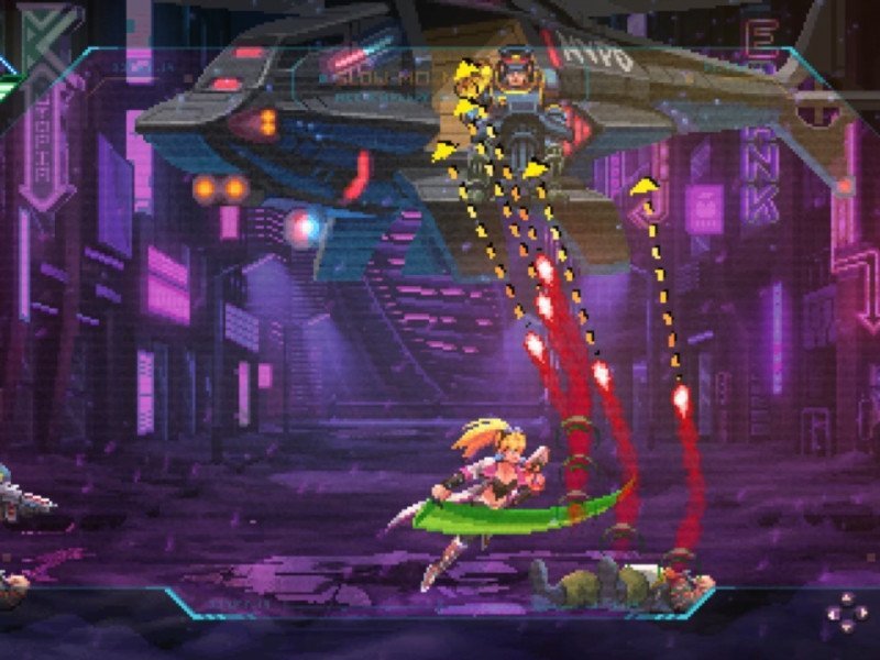 Le jeu arbore un style pixelisé qui lui confère un aspect rétro. Cependant, grâce à ses couleurs vives et à son niveau de détail exceptionnel, il conserve une allure résolument moderne. Les néons qui ornent chaque niveau sont si éclatants que l'atmosphère de ce monde sombre n'a rien de lugubre. Côté performances, le jeu est très fluide, avec un taux de 60 images par seconde, malgré la multitude d'ennemis et de projectiles à l'écran. On apprécie particulièrement le design soigné des personnages, notamment la séduisante Mariana Vitti. La bande originale mêle saxophone noir et arpèges tonitruants, épousant parfaitement le rythme effréné du jeu. Vous découvrirez une musique aux accents rock et techno, en parfaite harmonie avec l'univers cyberpunk. Lors des moments plus calmes, une musique mélancolique accompagne l'écoute, rendant vos pauses plus relaxantes. Malheureusement, les dialogues des cinématiques sont dépourvus de doublage, ce qui aurait pu renforcer l'intensité narrative et émotionnellen mais au moins les textes écrans sont en français. À l'instar des jeux de type Beat 'em up, les jeux de type Run-and-Gun proposent des sessions de jeu relativement courtes. Cependant, malgré cela, leur rejouabilité est excellente grâce aux différents niveaux de difficulté. Ce jeu propose trois options : Débutant, Moyen et Difficile.