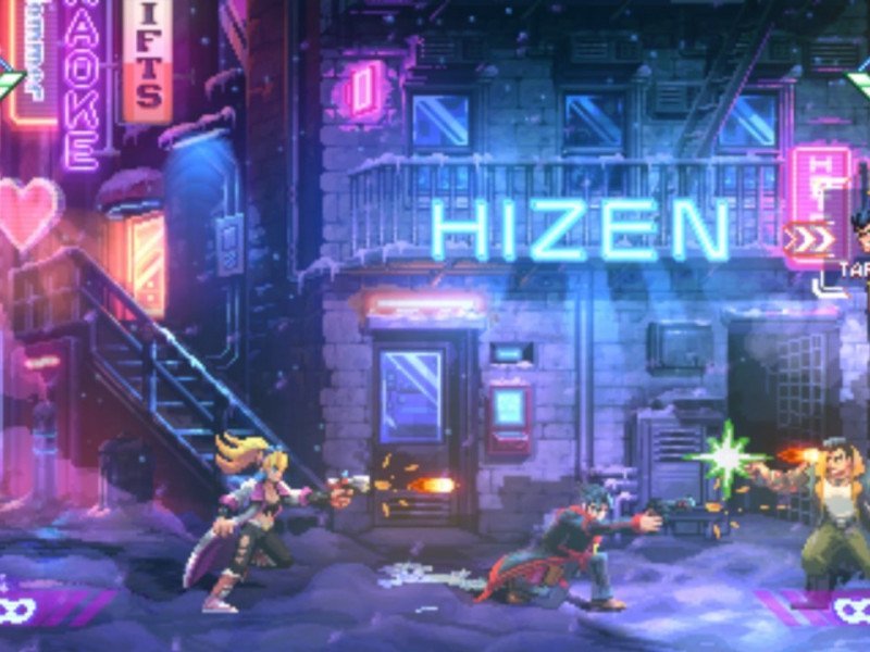 Dans les années 1980 et 1990, outre le beat 'em up, un autre genre de jeu vidéo a connu un essor fulgurant : le run-and-gun . Alors que le beat 'em up privilégiait le combat au corps à corps ou l'utilisation d'armes de mêlée, le run-and-gun mettait l'accent sur les armes à feu. Deux titres qui ont contribué à populariser ce genre sont Contra et Metal Slug SLUG. Zenovia Interactive , un studio de développement new-yorkais, ambitionne de faire revivre ce genre oublié avec une nouvelle licence : Neon Inferno . Loin de se contenter de copier les titres existants, le studio compte y intégrer de nouvelles mécaniques pour rendre le genre plus innovant que jamais. Dans trente ans, soit aux alentours de 2050, New York est en proie à une guerre intestine. Les organisations criminelles contrôlent quatre des cinq arrondissements et s'affrontent sans merci, ainsi que la police corrompue de New York, dans une lutte acharnée pour le pouvoir. Une jeune famille mafieuse fait son apparition dans cette dystopie, cherchant à consolider son emprise et à conquérir la suprématie. Angelo Morano et Mariana Vitti , deux tueurs à gages engagés par Don Venatori pour assassiner des cibles appartenant à un syndicat rival, doivent se frayer un chemin dans tous les recoins de cette zone hyper-métropolitaine : des bidonvilles misérables, où la police et les gangs se livrent une guerre brutale qui ravage des quartiers entiers, aux jardins clos et illuminés de néons du centre de Manhattan, où les classes supérieures et les législateurs paresseux passent leur temps.