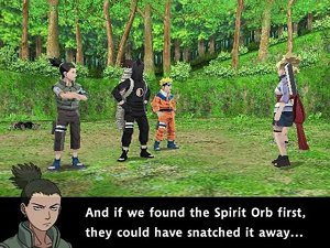 A la manière d'un Final Fantasy, les déplacements sur la carte du monde déclenchent systématiquement des affrontements. Rien de vraiment délicat, il y suffit de se débarasser de quelques méchants, avant d'acquérir de l'expérience qui permettra d'améliorer ses caractéristiques (à savoir, la force, l'énergie, le Chakra ou la vitesse). Parfois, vous devrez également participer à des mini-jeux dont la récompense est pratiquement toujours une nouvelle arme ou un nouveau coup spécial.